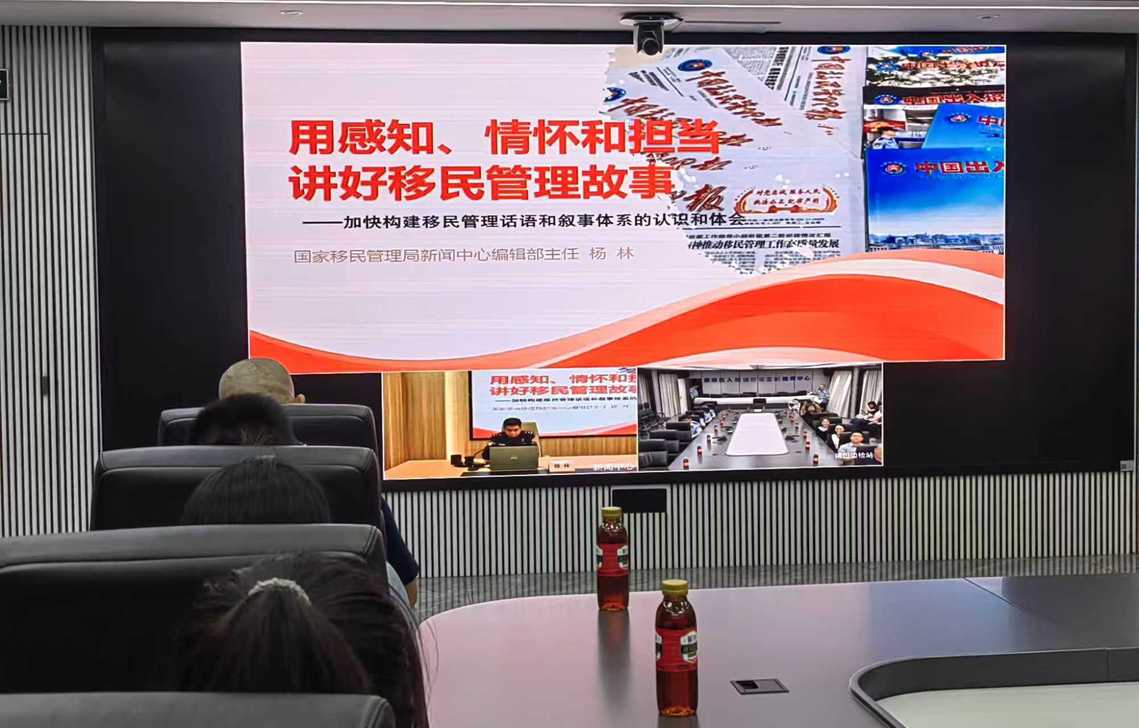 此次实践教学是学院党委宣传部党支部推动理论教学与社会实践深度融合、创新学习形式的重要举措。活动中,曾多次荣获中国新闻奖的国家移民管理局新闻中心编辑部主任杨林结合移民管理工作实际,系统阐述了构建具有中国特色、体现时代精神的移民管理话语和叙事体系的重大意义、实践路径与最新成果。他的讲解深入浅出,既有理论高度,又有实践温度,帮助大家从国家治理体系和治理能力现代化的高度,深化了对新时代移民管理工作的理解,也为更全面、深入地领会党的二十届四中全会关于推进国家治理体系和治理能力现代化的战略部署提供了鲜活素材和独特视角。